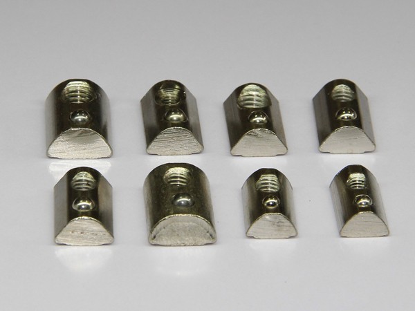 用途:彈性螺母塊能被直接塞進(jìn)鋁型材槽坑中的任意裝配點(diǎn),它背部的彈簧鋼珠能固定它的位置,使安裝十分簡單且可靠,它是型材連接中使用比較多的配件之一。