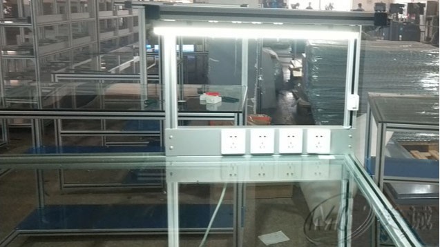 鋼化玻璃操作臺(tái) 由專用工業(yè)鋁型材作為框架,其需求根據(jù)客戶制定進(jìn)行免費(fèi)設(shè)計(jì)、切割加工,配件連接而組成,其中運(yùn)用了鋼化玻璃作為臺(tái)面,裝有照明日光燈,以及電源插座方便實(shí)際工作中的操作,提高工作效能。
