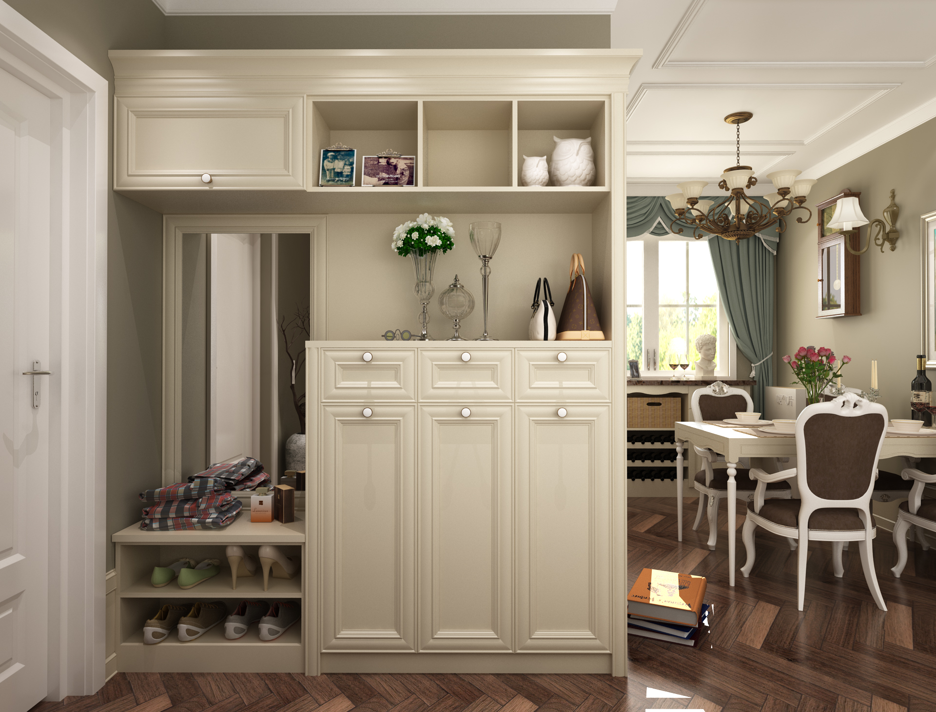全鋁鞋柜-01(風格:簡歐;顏色:象牙白)